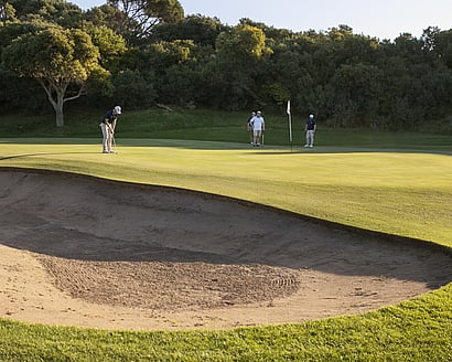 The tee is offset to the fairway which makes driving awkward. The landing area is wide but there is trouble down both sides of the fairway. The hole narrows as you get closer to the green, with cypresses on the left and a fairway bunker on the right. The green is surrounded by 3 bunkers and runs from back to front.
